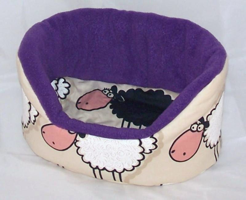 Hochwertiges, kuscheliges Bettchen/Sofa/Nest für Meerschweinchen und andere Nager plus 1 herausnehmbares Kissen mit Schafen, lila Fleece, beides ist wendbar. Das Kuschelbettchen ist waschbar bei 30/40 Grad. Das Kissen ist am besten per Handwäsche zu waschen. Setpreis.